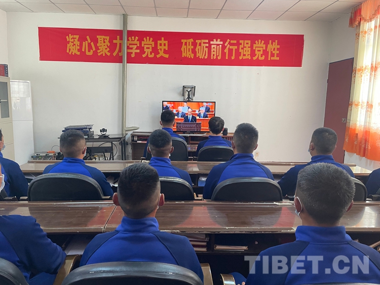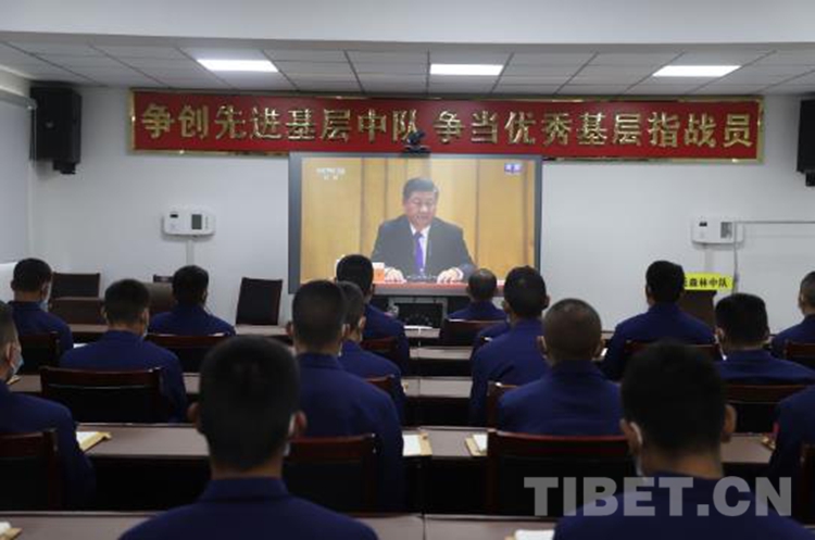 圖為那曲市森林消防大隊(duì)山南駐防分隊(duì)組織觀看紀(jì)念辛亥革命110周年大會(huì)直播