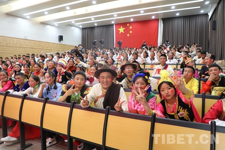 活動(dòng)中,同學(xué)們用藏漢雙語傾情朗誦《石榴籽心連心,民族團(tuán)結(jié)一家親》,深情表達(dá)了對(duì)偉大祖國深沉熱烈的愛、對(duì)維護(hù)民族團(tuán)結(jié)堅(jiān)定的信心和決心。山南邊境管理支隊(duì)浪卡子邊境管理大隊(duì)教導(dǎo)員索朗達(dá)杰同志通過講述邊防部隊(duì)愛邊守邊、加強(qiáng)民族團(tuán)結(jié)的故事,將無數(shù)邊防戰(zhàn)士守衛(wèi)國境線、捍衛(wèi)國家領(lǐng)土、維護(hù)民族團(tuán)結(jié)的時(shí)代縮影呈現(xiàn)給大家;舞蹈《洗衣歌》生動(dòng)反映了軍民魚水深情;原雙湖縣中心小學(xué)教師、西藏自治區(qū)民族團(tuán)結(jié)先進(jìn)代表曹小花老師分享了自己在那曲雙湖縣堅(jiān)守12年基礎(chǔ)教育,踐行民族團(tuán)結(jié)的感人經(jīng)歷,在坐的師生深受感動(dòng);索朗頓珠同志講述了卓嘎、央宗姐妹作為“神圣國土的守護(hù)者”堅(jiān)守玉麥三人鄉(xiāng),踐行“國是中國 家是玉麥”的感人故事!在活動(dòng)中,56名同學(xué)身著各民族服裝伴著手語飽含深情地演繹了《國家》,用指尖唱出對(duì)家的依賴、國的熱愛;朗誦《請(qǐng)黨放心,強(qiáng)國有我》鏗鏘有力的展現(xiàn)了新一代西藏團(tuán)員青年在黨的領(lǐng)導(dǎo)下,加強(qiáng)民族團(tuán)結(jié)、建設(shè)美麗西藏的青春誓言!最后,活動(dòng)在全體團(tuán)員青年重溫入團(tuán)誓詞中結(jié)束。