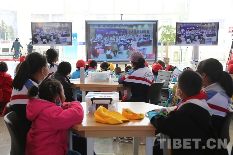 圖為西藏自然科學博物館受邀連線此次活動,西藏中小學生代表準備連線 攝影:王佳豪