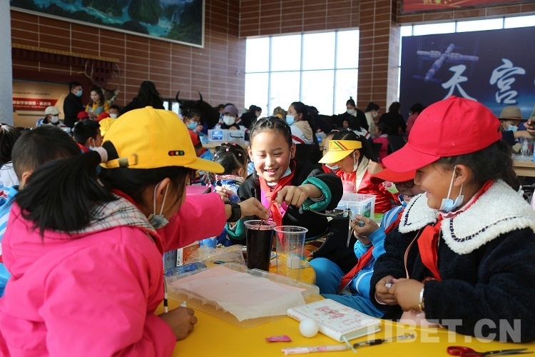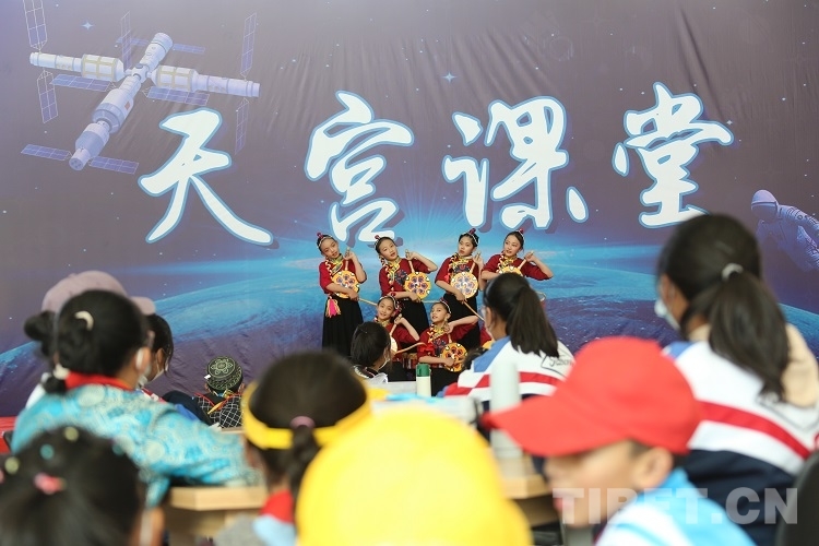 西藏自治區(qū)拉薩市西藏自然科學博物館內,在熱巴舞的歡聲律動和“液氮火箭”科普實驗的“飛天掠影”中,來自拉薩市第一小學和拉薩江蘇實驗中學的80名學生共同觀看了“天宮課堂”連線直播,聆聽來自空間站的親切聲音,與中國空間站內的航天員“零距離”同步“天宮課堂”科學實驗操作。