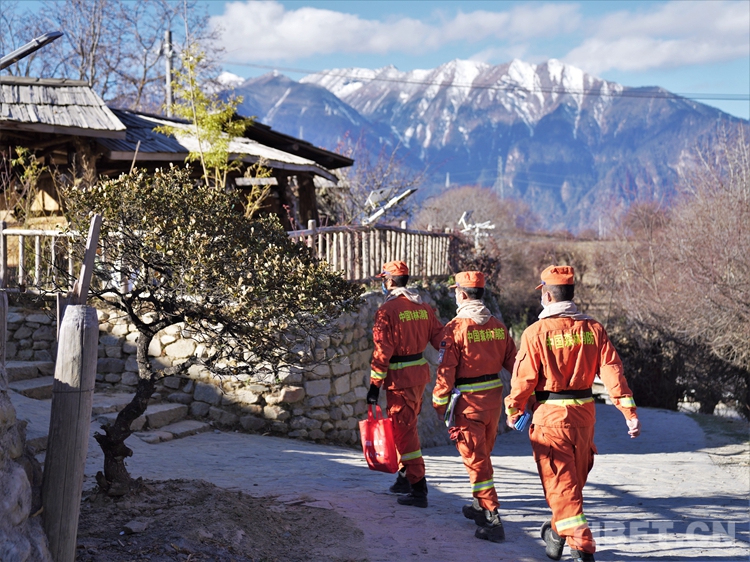 圖為巴宜區(qū)中隊指戰(zhàn)員入戶為駐地群眾普及防火知識