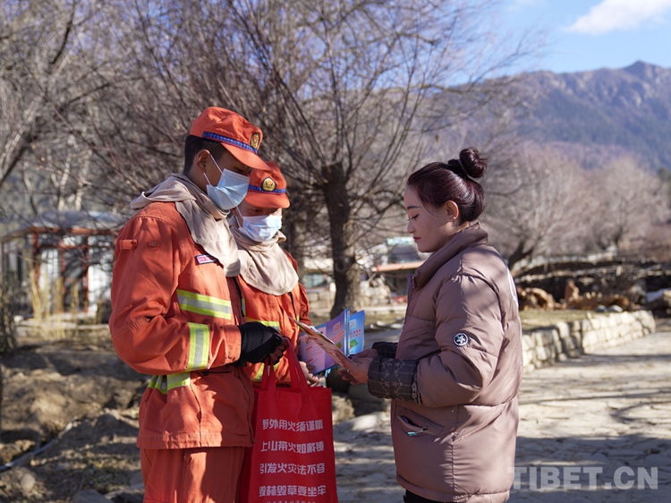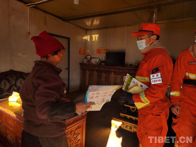 圖為巴宜區(qū)中隊指戰(zhàn)員為駐地群眾普及防火知識