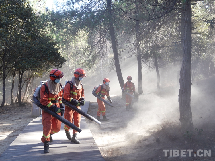 圖為巴宜區(qū)中隊指戰(zhàn)員清理林下可燃物
