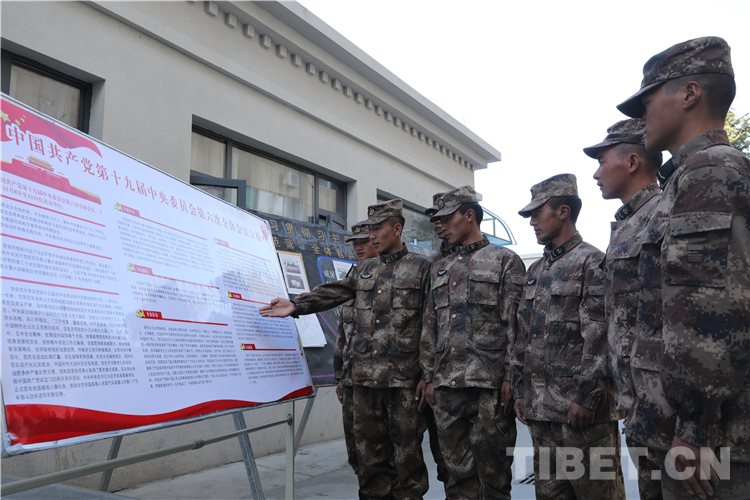 圖為拉薩警備區(qū)某團學習十九屆六中全會精神
