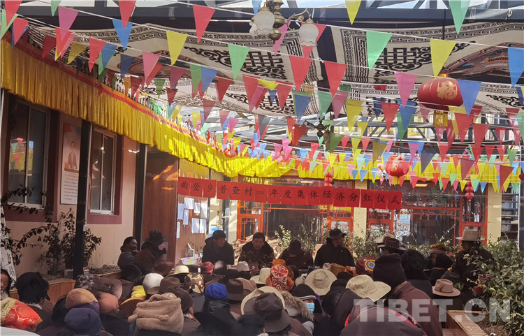 當天,曲登鄉(xiāng)政府陽光棚傳來陣陣歡聲笑語,許多牧民群眾早早來到鄉(xiāng)上,領取2021年普查村集體經(jīng)濟分紅。此次分紅實現(xiàn)了40萬余元的既定目標,惠及全村139戶918人。截止目前,勒通牦牛養(yǎng)殖專業(yè)合作社現(xiàn)有牦牛存欄1012多頭,2021年牦牛出欄46頭,收益分紅兌現(xiàn)403500元,全村脫貧戶每戶分紅1000元,一般農戶每戶分紅900元,每人分紅285元。