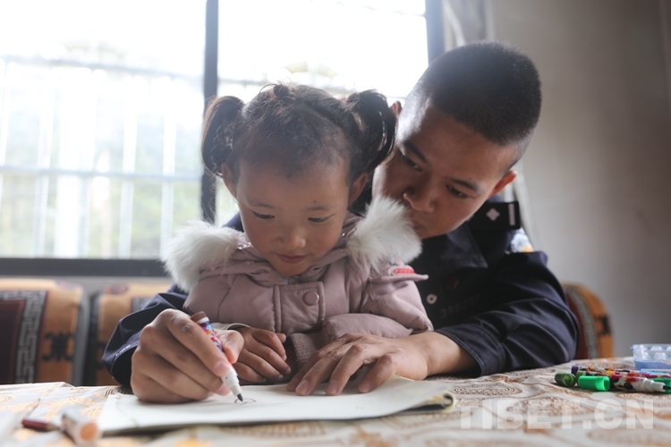 7歲女孩白瑪旺姆,是西藏林芝市米林縣南伊鄉(xiāng)瓊林村扎西達瓦的孫女,于2020年1月從三巖地區(qū)搬遷過來,由于天生視力殘疾,不能完全看清物體,邊境派出所民警了解到情況后,每次走訪中,他們都要教小旺姆學拼音、認漢字,鼓勵她積極讀書學習。