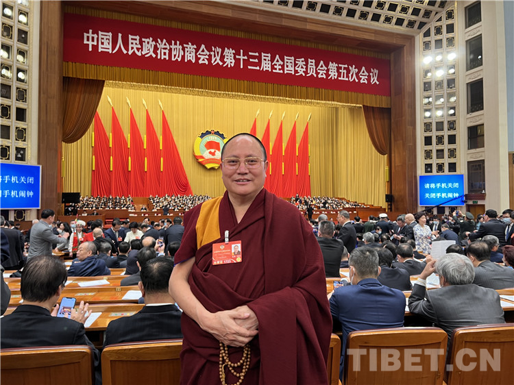 圖為全國政協(xié)委員、四川省阿壩州人大常委會副主任達(dá)扎·尕讓托布旦拉西降措