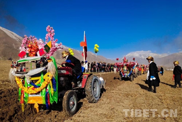 據(jù)悉,儀式當日上午,村民們會身著節(jié)日盛裝,歡聚在田間地頭、載歌載舞隆重舉行春耕春播儀式。活動現(xiàn)場,姑娘們舉起手中的切瑪、青稞酒、人參果為犁手們唱歌敬酒,在祝福的歌聲中,開啟春耕“第一犁”。在西藏,過去是牦牛耕地,如今,隨著農(nóng)業(yè)科學化發(fā)展,現(xiàn)在農(nóng)耕都用現(xiàn)代化的拖拉機“鐵?!备亍R话慵獣r一到,一個個犁手頭頂金黃圓筒帽,身穿氆氌藏裝駕著一輛輛插著五星紅旗,系著潔白哈達的“鐵?!本従忨傔M田間,一片片沃土隨著鐵犁慢慢翻開,婦女們在后面播撒青稞良種……在田埂上形成一道最靚麗的風景線,好不壯觀!
