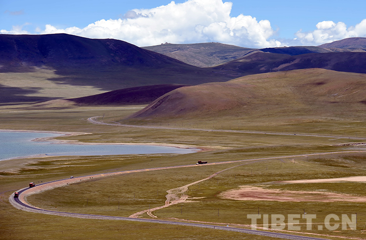 這是一條由牛羊馱隊(duì)蹄印演變而成的、通往申扎縣的平坦公路。如今的汽車(chē)運(yùn)輸早已替代了過(guò)去的牛羊馱隊(duì)運(yùn)輸(唐召明2017年6月24日攝)