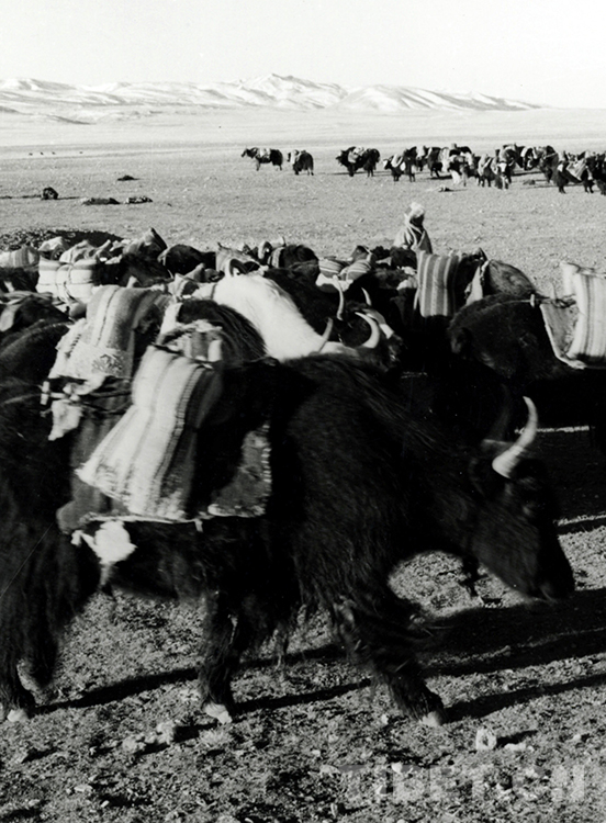 這是從藏北無(wú)人區(qū)鹽湖馱運(yùn)鹽巴的一支牦牛馱隊(duì)(唐召明1987年攝)