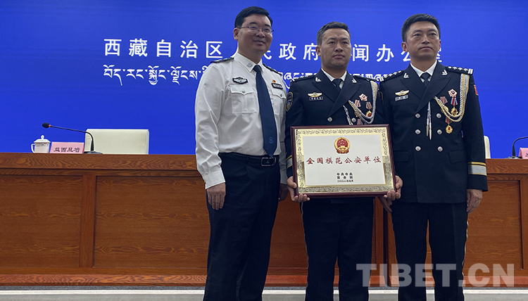 中國西藏網(wǎng)訊 6月20日,西藏公安機關深入學習宣傳貫徹全國公安系統(tǒng)英雄模范立功集體表彰大會精神新聞發(fā)布會在西藏自治區(qū)人民政府新聞辦公室舉行?!霸诰薮蟮臉s譽面前,我們交警大隊全體民輔警無比光榮、無比驕傲、無比自豪,倍受鼓舞、倍感振奮?!卑l(fā)布會上,被黨中央、國務院授予“全國模范公安單位”榮譽稱號的那曲市安多縣公安局交警大隊代表其美永忠說。