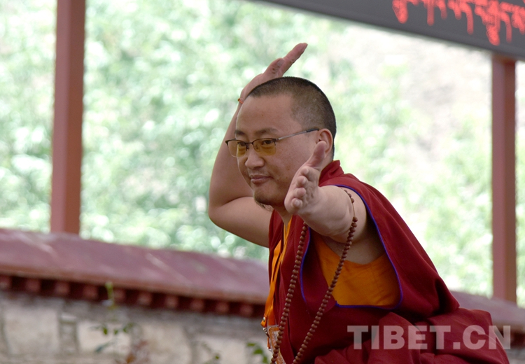 中國西藏網(wǎng)訊 身穿絳紅色袈裟,坐者仔細聆聽、站立者臂套念珠、迸出佛學妙語;圍觀者不時大笑……這是6月21日下午記者在西藏佛學院辯經(jīng)場看到的“唇槍舌戰(zhàn)”。