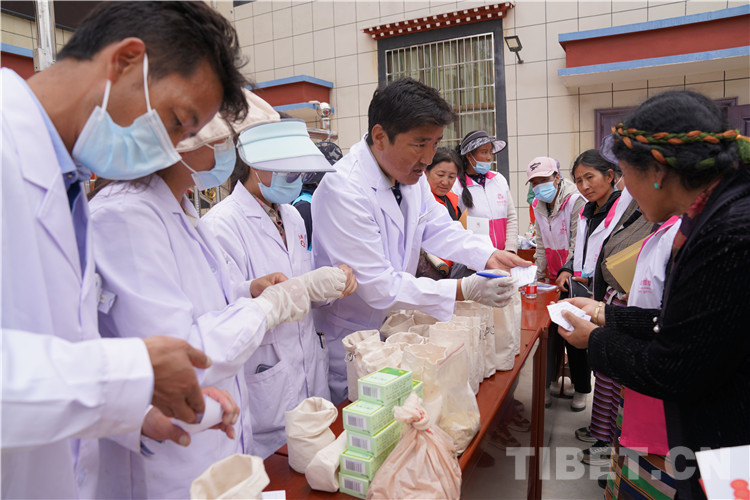 義診中,瓊結(jié)縣衛(wèi)健委(藏醫(yī)醫(yī)院)醫(yī)療健康志愿隊耐心接待每位前來咨詢的農(nóng)牧民群眾,悉心為農(nóng)牧民群眾診斷病情。
