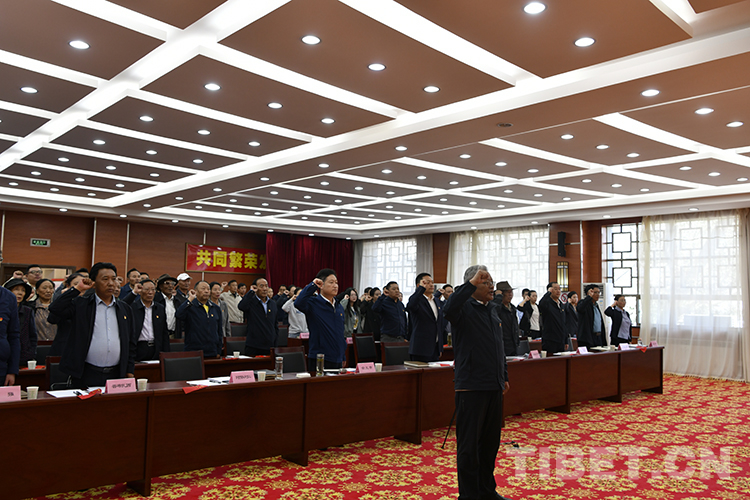 圖為7月1日,西藏自治區(qū)黨委統(tǒng)戰(zhàn)部舉行慶“七一”主題黨日活動,全體黨員重溫入黨誓詞 攝影:王媛媛