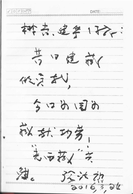 我望著老將軍的背影,盯著散發(fā)墨香的題詞,激動(dòng)得眼里噙滿了淚水。