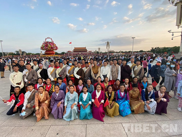 圖為2021年10月1日,拉薩市北京中學(xué)首屆“北京班”進(jìn)京游學(xué),參觀天安門廣場升旗儀式