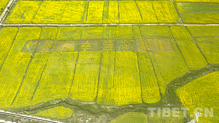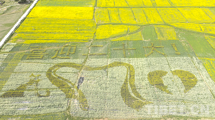 值得一提的是,在扎西崗鄉(xiāng)主會(huì)場(chǎng),當(dāng)?shù)貙⒒牡刂匦麻_墾,安排種植了油菜花大地景觀。不同品種、不同顏色的油菜花海為背景的種植,從空中俯瞰形成了“喜迎二十大”“松贊故里 幸福墨竹”字樣和松贊干布、文成公主、哈達(dá)、愛(ài)心等圖樣,表達(dá)當(dāng)?shù)厝罕娤灿h的二十大的美好祝福。