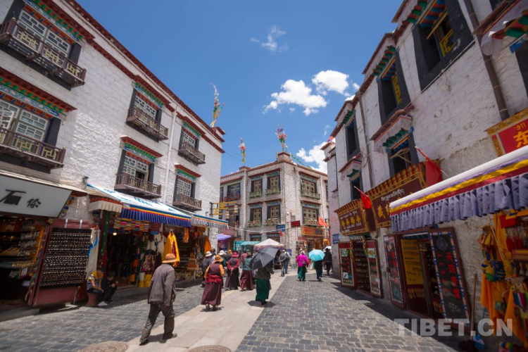 2021年7月22日,習近平總書記步行察看八廓街風貌,走進特色商品店,詢問旅游文創(chuàng)產(chǎn)業(yè)發(fā)展、藏文化傳承保護等情況??倳浉锌卣f:“千年八廓街,是我們各民族建起來的八廓街。各民族文化在這里交流交往交融,我們中華民族的大家庭在這里其樂融融。”