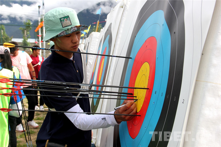 中國(guó)西藏網(wǎng)訊 7月29日,西藏自治區(qū)第十三屆運(yùn)動(dòng)會(huì)暨第五屆民族傳統(tǒng)體育運(yùn)動(dòng)會(huì)射箭比賽在西藏自治區(qū)林芝市西藏農(nóng)牧學(xué)院拉開戰(zhàn)幕,8支代表隊(duì)、17名運(yùn)動(dòng)員展開PK。據(jù)了解,本屆運(yùn)動(dòng)會(huì)射箭比賽項(xiàng)目為男女個(gè)人70米雙輪賽,比賽為期2天。當(dāng)天,在男子個(gè)人70米雙輪賽中,來(lái)自林芝市代表團(tuán)的嘎瑪江村以總成績(jī)637環(huán),并在附加賽的較量中通過(guò)一支箭一環(huán)之勝獲得了冠軍。據(jù)相關(guān)人員介紹:“運(yùn)動(dòng)員的心理有細(xì)微的變化,都會(huì)導(dǎo)致動(dòng)作變形,今天沒有大風(fēng)、沒有雨,適合比賽?!保ㄖ袊?guó)西藏網(wǎng) 記者/拉姆 德吉卓嘎)