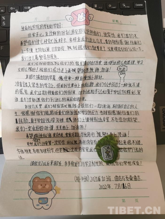 此次嘉黎之行,讓我真切地感受到了西藏同胞的純樸、熱情、善良。孩子們課堂上的認(rèn)真思考、仔細(xì)演算、積極回答都給我們留下了深刻的印象。我們一起過林卡,一起吃飯,到家里做客……無數(shù)的言行舉止之間都流露出他們的講禮貌、重禮儀。我們也結(jié)識(shí)了為這片熱土奉獻(xiàn)多年青春的公安政委、校長、書記等等,正是他們的無私付出,讓雪域高原欣欣向榮,富強(qiáng)美麗。未來,我們也將與嘉黎縣中學(xué)建立長期的合作,號(hào)召更多南航學(xué)子為當(dāng)?shù)貛ハM猓?/p>