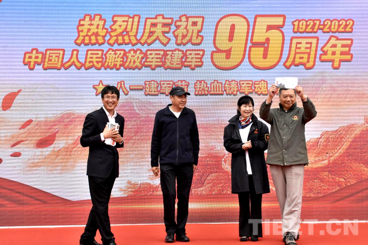 圖為圖為中國(guó)關(guān)心下一代紅偉愛(ài)國(guó)主義西藏教育基地正式簽約授牌儀式現(xiàn)場(chǎng)開(kāi)國(guó)元?jiǎng)缀蟠鷤優(yōu)槊飨裾虏┪镳^贈(zèng)送簽名建軍95周年紀(jì)念封和紀(jì)念郵箋 攝影:拉姆