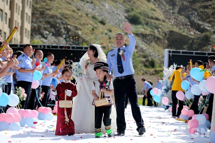 中國西藏網訊 8月5日,一場以“邊守·邊愛”為主題的集體婚禮在西藏出入境邊防檢查總站舉辦,12對戍邊民警夫妻在親朋好友和戰(zhàn)友們的見證下步入婚姻殿堂。