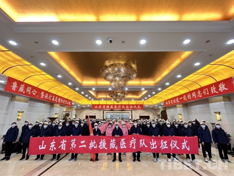 圖為山東省第二批援藏醫(yī)療隊出征儀式