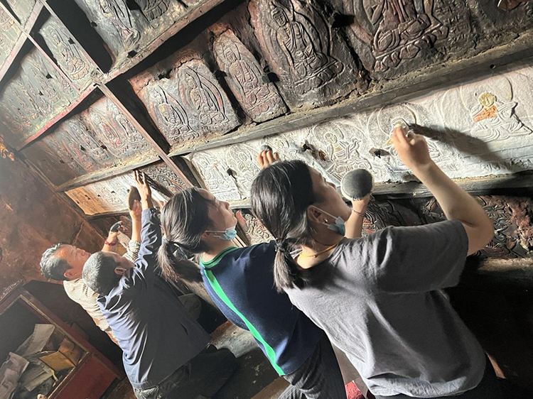 圖為日喀則市石刻藝術(shù)博物館工作人員開展石刻文物拓印工作 圖片來(lái)源:日喀則市文化局官網(wǎng)