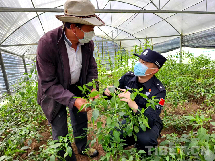 格當(dāng)邊境派出所所長索朗頓珠再三向民警強(qiáng)調(diào):“讓褲腿帶上泥,讓法治刻心里!”接到“任務(wù)”的民警們紛紛出發(fā)??粗箭埓宸N植基地里有說有笑的村民們,民警饒睿便加入進(jìn)去。他手上拿著中國地圖,向村民講解《中華人民共和國陸地國界法》和我國陸地國界的基本情況,教育引導(dǎo)群眾堅(jiān)決與邊境地區(qū)的違法犯罪行為作斗爭(zhēng),發(fā)現(xiàn)違法犯罪行為第一時(shí)間與派出所聯(lián)系。