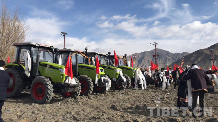 圖為西藏農(nóng)民開(kāi)耕儀式上的機(jī)械化工具 攝影:拉加當(dāng)周