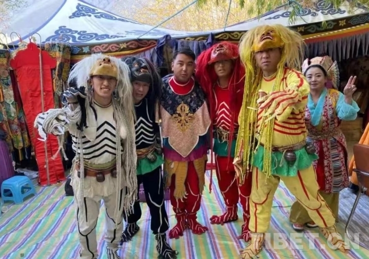 起初抱著學(xué)習(xí)的態(tài)度來到雪巴拉姆藏戲團(tuán)的旦增益西,被各位前輩對(duì)藏戲的執(zhí)著和堅(jiān)守打動(dòng)了。“雪巴拉姆藏戲團(tuán)共有56名成員,團(tuán)隊(duì)的年齡層次從86到16歲。團(tuán)隊(duì)里的每個(gè)人都是一專多能,因?yàn)槭杖氩欢啵蠹乙捕忌砑娓睒I(yè),但是沒有人放棄學(xué)習(xí)藏戲?!?nbsp;