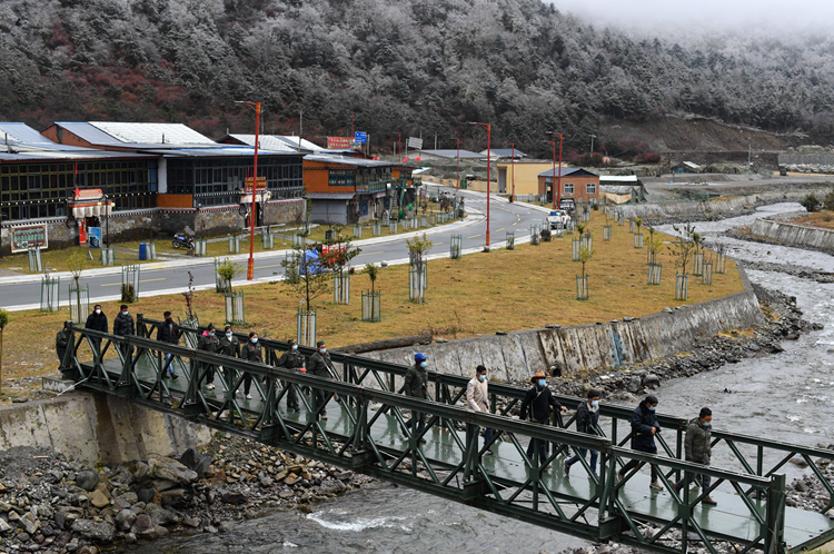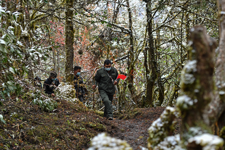 圖為索朗頓珠組織護邊員出發(fā)巡邊