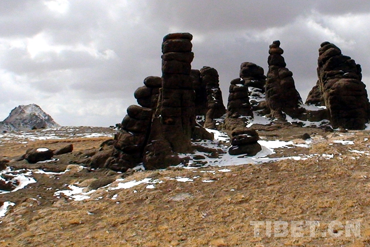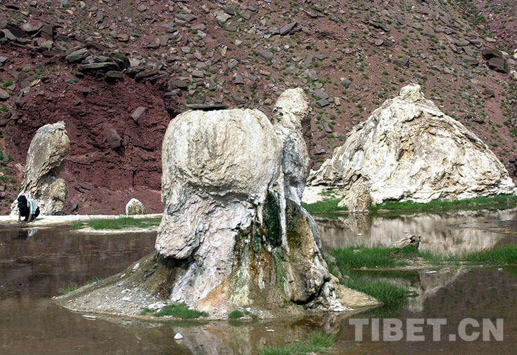 這是藏北高原榮瑪溫泉巖柱景觀(guān)(唐召明2001年攝)