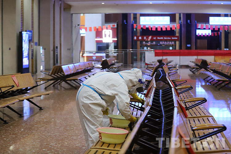 圖為拉薩火車站組織在站集中管理的干部職工分組分區(qū)進行站區(qū)衛(wèi)生全面清理 攝影:李海星