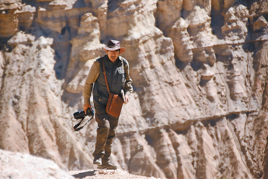 圖為張建林在野外考察 攝影:王毅 圖片來(lái)源:人民日?qǐng)?bào)