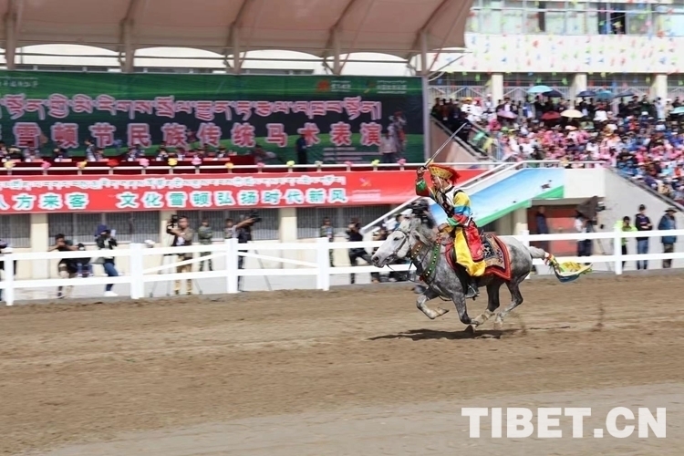 圖為入選2022中華體育文化優(yōu)秀節(jié)慶項目雪頓節(jié)民族傳統(tǒng)馬術(shù)表演