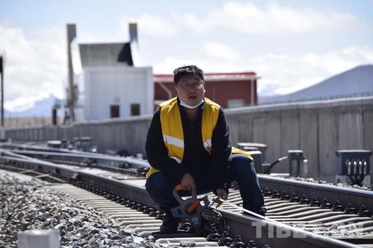 圖為王楨睿在工作中。供圖:青藏鐵路集團有限公司格爾木工務段,攝影:東科力加
