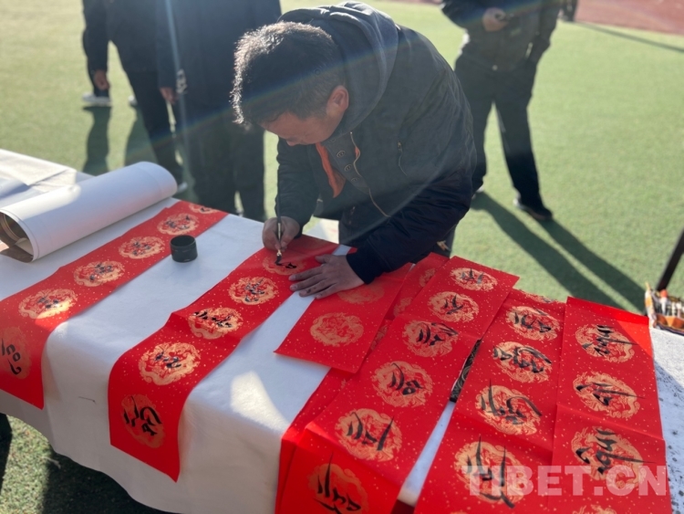 中國西藏網訊 2月16日,西藏自治區(qū)文聯(lián)主辦的“我們的中國夢”——文化進萬家活動在極高海拔生態(tài)搬遷安置點開展。在送“書法”現(xiàn)場,由西藏書法協(xié)會和山南市11位書法家為當?shù)厝罕娝腿?00多張寓意美好的新年祝福和群眾期望的新年祝愿等?;顒蝇F(xiàn)場群眾絡繹不絕,大家心滿意足地拿著書法家為自己贈送的精美“禮品”。一旁書法家們忙碌地為群眾書寫祝詞,另一旁群眾們晾曬著他們得到的書法作品,一時間現(xiàn)場成了“書法展”,時不時地有人前來參觀欣賞。(中國西藏網 記者/德吉卓瑪)