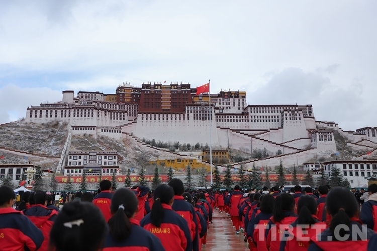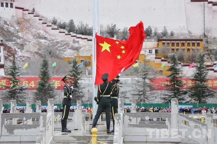 28日清晨,瑞雪洗禮拉薩,處處煥然一新,在干凈清新的氣息中,來自西藏各族各界的代表2000余人齊聚布達(dá)拉宮廣場(chǎng),以升國旗、唱國歌的方式紀(jì)念百萬農(nóng)奴解放64周年。