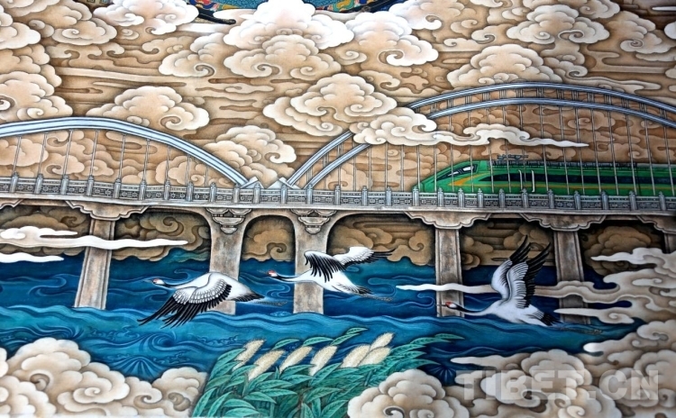 據(jù)介紹,自西藏和平解放以來,在黨和國家的政策扶持下,西藏的唐卡藝術(shù)得到了很好的傳承和發(fā)展,傳統(tǒng)唐卡的五大畫派在各自的創(chuàng)作領(lǐng)域都有很高的藝術(shù)成就,但是傳統(tǒng)唐卡的各大畫派集中創(chuàng)作的形式從未有過,用傳統(tǒng)唐卡描繪新西藏的盛世圖景更是空白。迫切地需要西藏本土的美術(shù)工作者擔(dān)起文化使命感,用民族美術(shù)的載體歌頌偉大的中華民族、歌頌我們所處的美好時代、歌頌來之不易的美好生活。大型唐卡壁畫《高原明珠》應(yīng)運(yùn)而生。