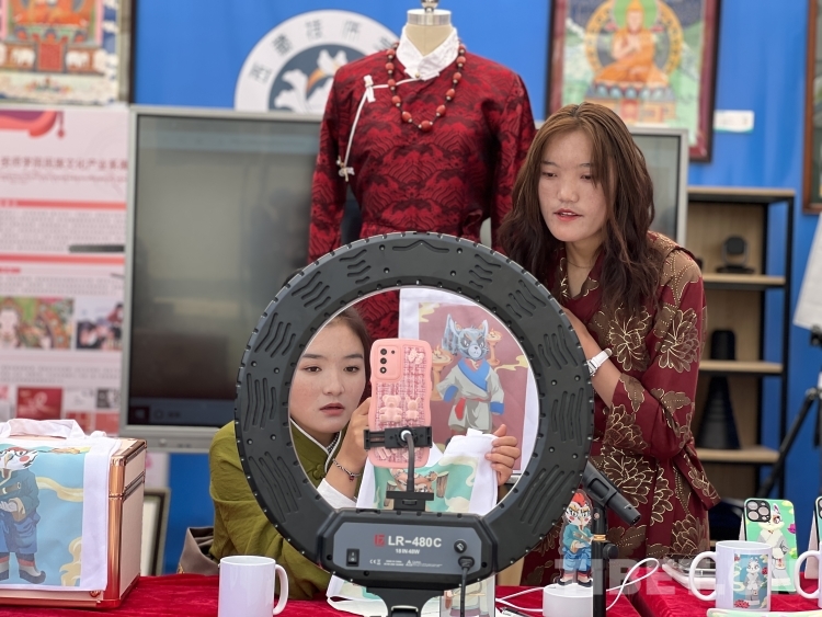 圖為西藏技師學院數(shù)字信息產(chǎn)業(yè)系學生正在直播介紹產(chǎn)品 攝影:德吉卓瑪
