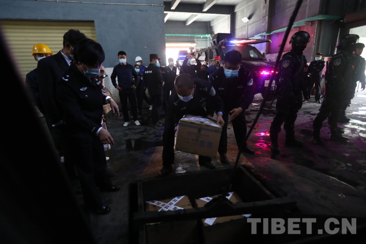 活動啟動后,貼有封條的50箱毒品被公安廳反恐特偵總隊公安民警和禁毒總隊民警裝運(yùn)至曲水縣危廢處置中心采用無公害化技術(shù)焚燒銷毀。