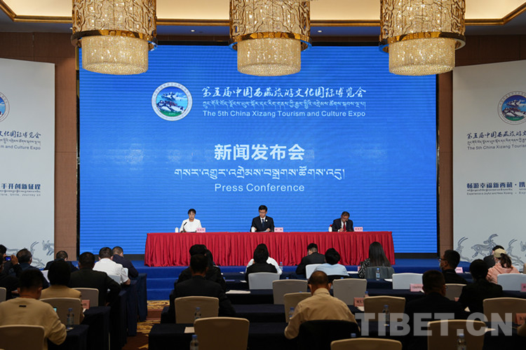 圖為第五屆中國(guó)西藏旅游文化國(guó)際博覽會(huì)第二次新聞發(fā)布會(huì)現(xiàn)場(chǎng) 攝影:陳浩力