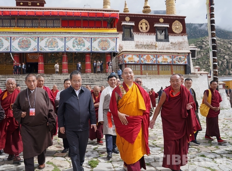 7月4日,全國(guó)政協(xié)常委、中國(guó)佛教協(xié)會(huì)副會(huì)長(zhǎng)、中國(guó)佛教協(xié)會(huì)西藏分會(huì)會(huì)長(zhǎng)班禪額爾德尼·確吉杰布來(lái)到拉薩市哲蚌寺禮佛朝拜、解經(jīng)釋教,這是班禪首次來(lái)到哲蚌寺禮佛朝拜。