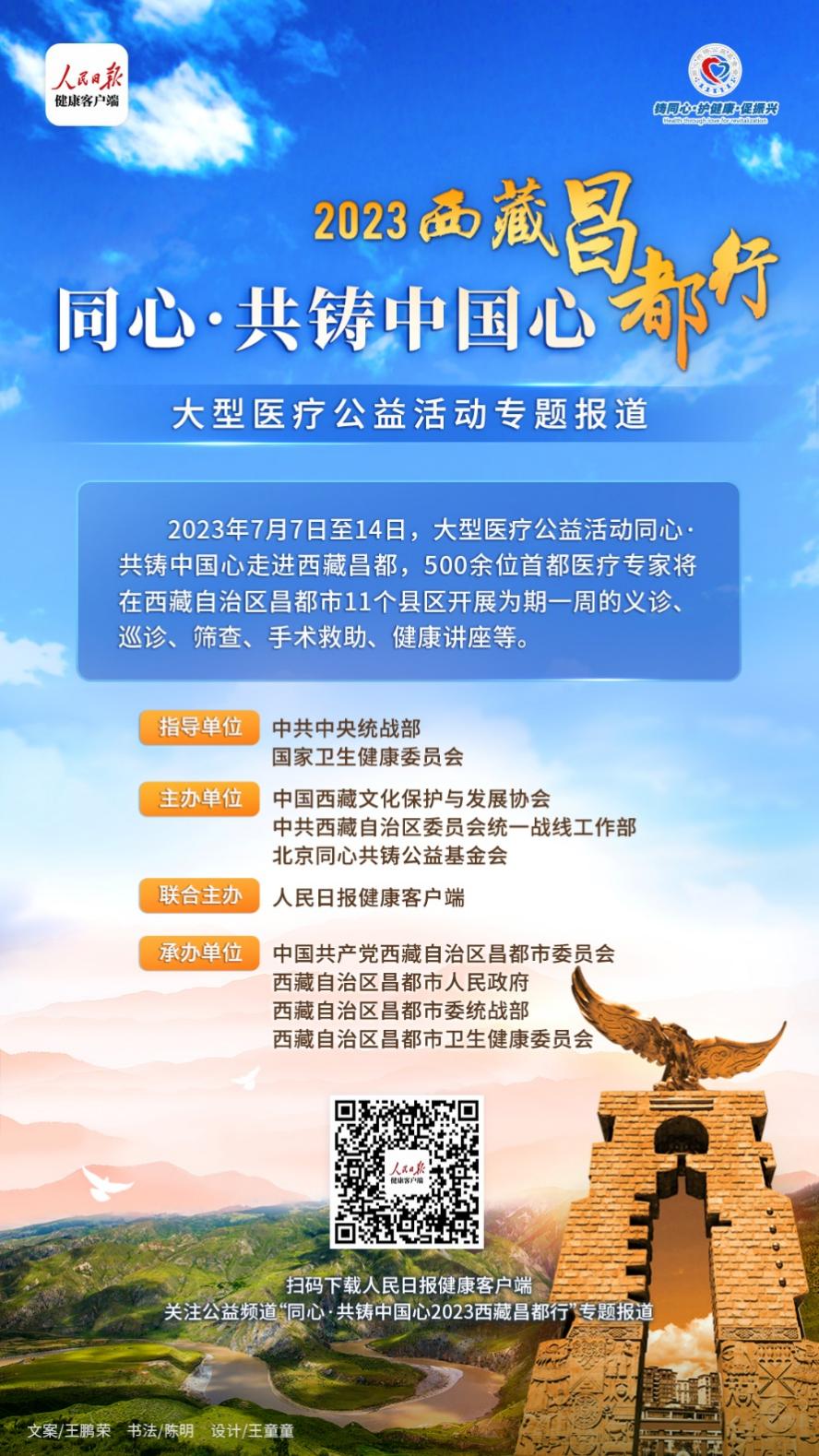 本次活動由中共中央統(tǒng)戰(zhàn)部、國家衛(wèi)健委指導,中國西藏文化保護與發(fā)展協(xié)會、中共西藏自治區(qū)委員會統(tǒng)一戰(zhàn)線工作部、北京同心共鑄公益基金會主辦,人民日報健康客戶端聯(lián)合主辦,將結(jié)合當?shù)亓餍胁W特點和醫(yī)療衛(wèi)生事業(yè)發(fā)展現(xiàn)狀,開展疾病篩查、義診巡診、高原手術(shù)、專業(yè)幫扶、健康科普和愛心捐贈等多種形式的健康幫扶工作。