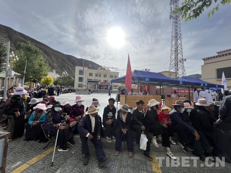 圖為孜托鎮(zhèn)群眾來到縣豐收廣場(chǎng)就醫(yī) 攝影:德吉卓瑪