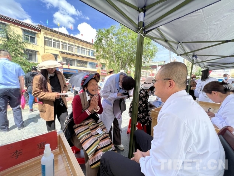 雖然大多數(shù)藏族群眾和醫(yī)生們存在溝通困難,但每位醫(yī)生旁邊專門有縣衛(wèi)生院工作人員進(jìn)行翻譯,絲毫不影響專家們向當(dāng)?shù)厝罕娫\斷看病和傳遞愛心。