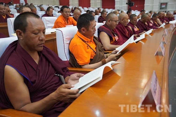 班禪說,藏傳佛教在長期發(fā)展過程中產(chǎn)生了浩如煙海的經(jīng)典,內(nèi)容非常豐富。研究發(fā)掘藏傳佛教經(jīng)典、弘揚中華優(yōu)秀傳統(tǒng)文化、實現(xiàn)藏傳佛教健康傳承是高僧活佛應該擔當?shù)臍v史使命。他要求,高僧活佛要恪守普度眾生的核心要義,秉承“上求佛道、下化眾生、莊嚴國土、利樂有情”的根本宗旨,踐行護國利民的重大要求,加強聞思修、提升講辯著,精進學識、精思漸悟,深入領(lǐng)會藏傳佛教經(jīng)典的核心要義,融會貫通,把握其中蘊含的深刻哲理,不馳于空想、不騖于虛聲,把佛教教義與自身實際、歷史背景與社會現(xiàn)實有機結(jié)合起來進行綜合思考,形成符合時代進步要求的認識、符合藏傳佛教傳承需要的見解,通過佛之真理,解眾生之惑,以更強的使命責任投入到教義闡釋中,綿綿用力,久久為功,一步一個腳印為推進藏傳佛教中國化作出不懈努力。