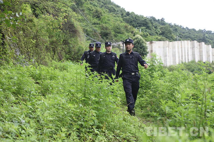 圖為扎西頓珠帶領(lǐng)執(zhí)勤三隊民警在邊境一線踏查 攝影:鄒興國
