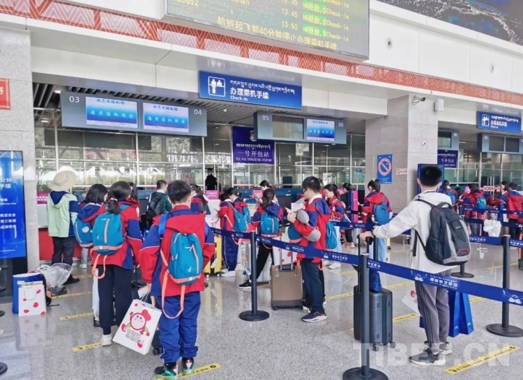 圖為暑運期間旅客在林芝機(jī)場辦理乘機(jī)手續(xù)